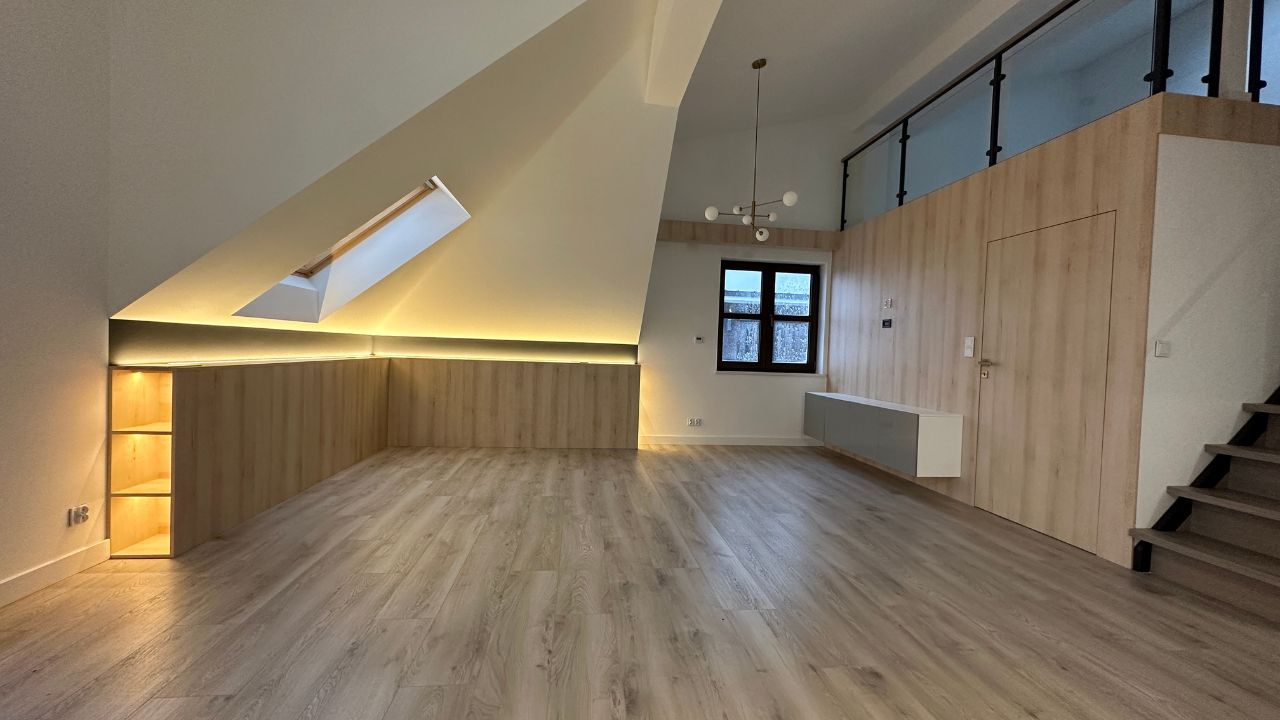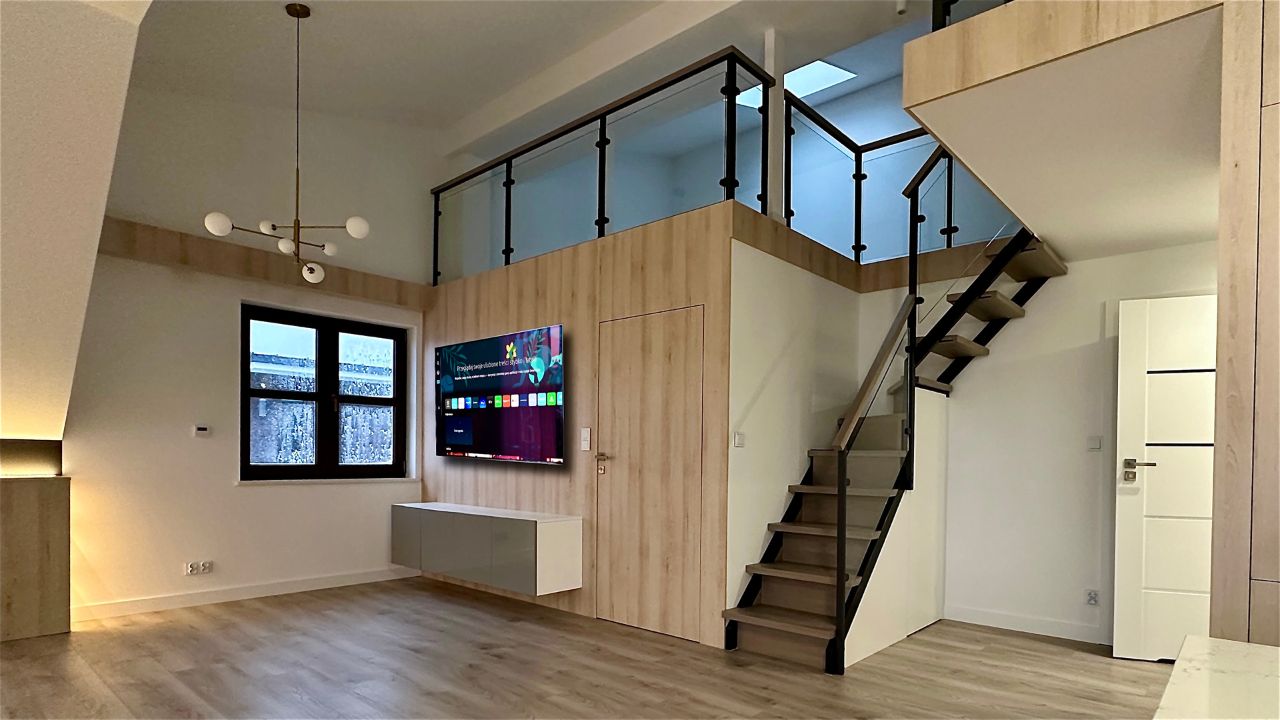 Antresola w mieszkaniu - saln z antresolą - schody na poddasze - projektant wnętrz - AlfaStylLublin